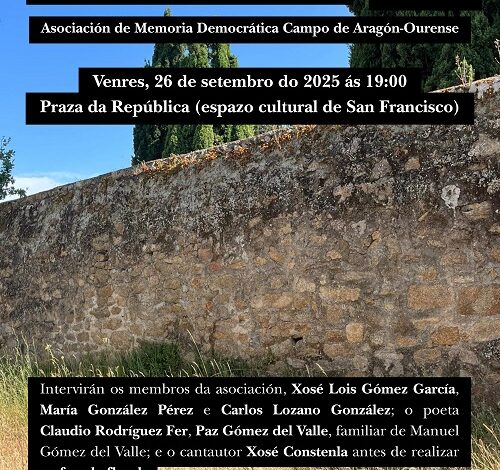 A Asociación de Memoria Democrática Campo de Aragón-Ourense, en colaboración cos Amigos da República e o Comité de Memoria Histórica…