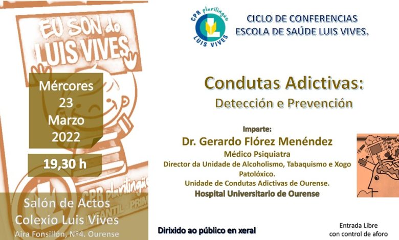 Leer más »Unha conferencia sobre Condutas Aditivas terá lugar o vindeiro mércores, 23 de marzo, no Colexio Luis Vives de Ourense. A…