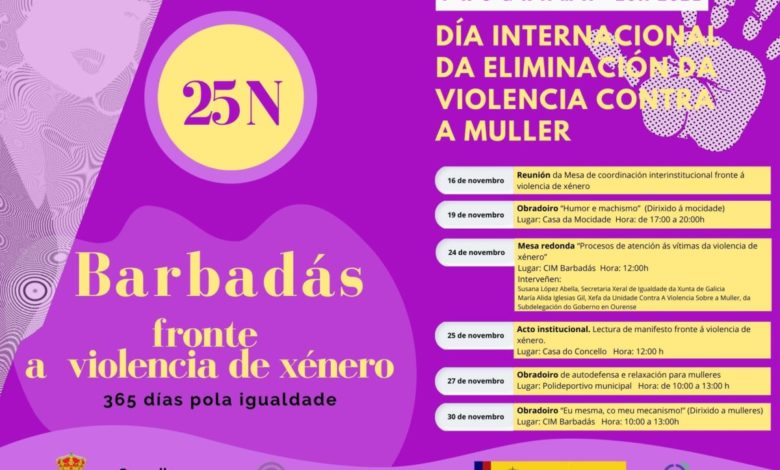 El ayuntamiento de Barbadás programa varios actos para conmemorar el día internacional contra la violencia de género (25 de noviembre).…