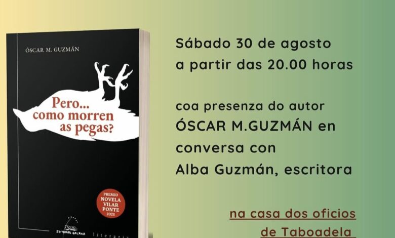 O escritor Óscar M. Guzmán presentará este sábado, 30 de agosto, a súa obra Pero… como morren as pegas?, gañadora…