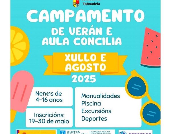 O Concello de Taboada vén de abrir o prazo de inscrición para o seu Campamento de Verán e Aula Concilia…