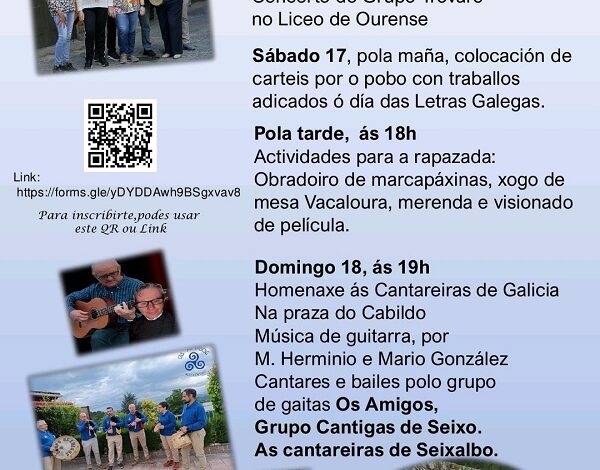 Leer más »A Festa das Letras Galegas 2025 en Seixalbo reunirá veciñanza e cultura durante tres días de actividades organizadas pola Asociación…