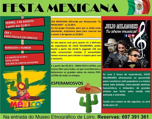 A Asociación Loiro na Memoria organiza unha festa Mexicana cunha cea, actuación musical e festa latina ata a madrugada. Este…