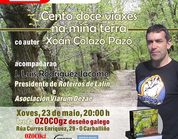 Leer más »Xoán Colazo Pazó presenta este xoves un libro sobre viaxes en OZOCOgz do Carballiño nun acto que comezará ás 20h.…