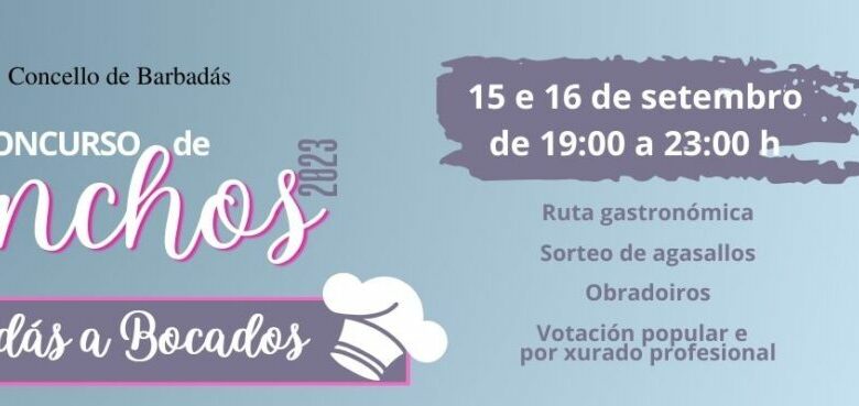 Leer más »O Concurso de Pinchos «Barbadás a Bocados» chega en 2023 á súa 6ª edición coa importante participación de 18 establecementos…