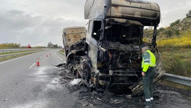 El incendio de un tráiler corta un carril de la autovía a la espera de que se puedan retirar los…